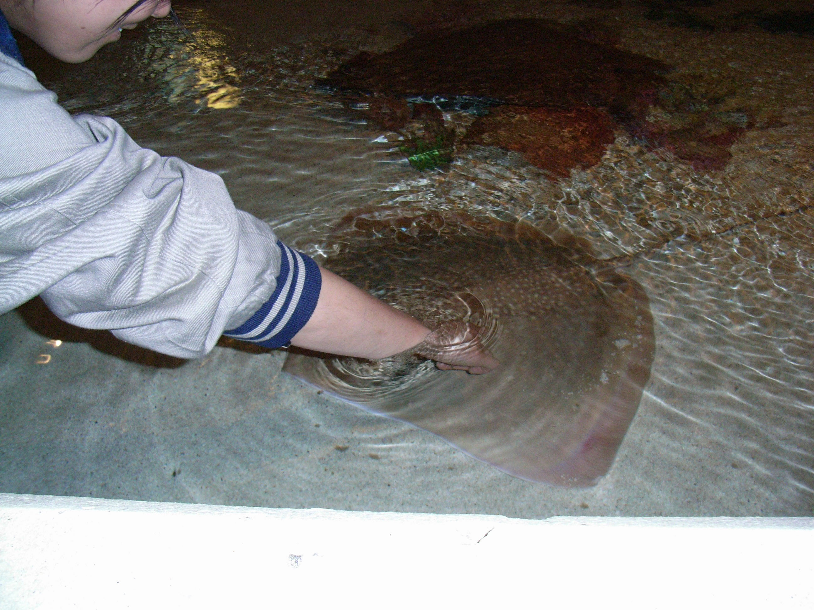 ホテルマンダレンベイの水族館、シャークリーフに行きました。トンネル型の水槽をくぐり魚達を眺める事ができ、触れ合い広場では、エイに触る事も出来ます。
